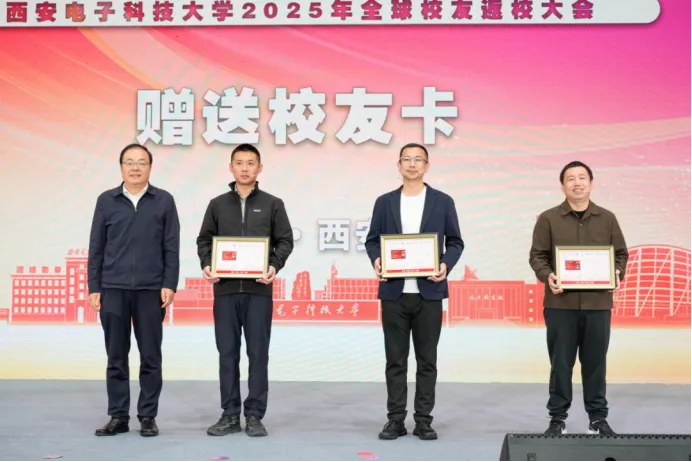 校友卡承载着母校的深情厚谊。大会现场,副校长刘宏伟为齐安科技的三位创始人赠送了西电校友卡及定制相框,这一象征意义的举动,进一步强化了齐安科技与西电之间永不割舍的情感纽带。