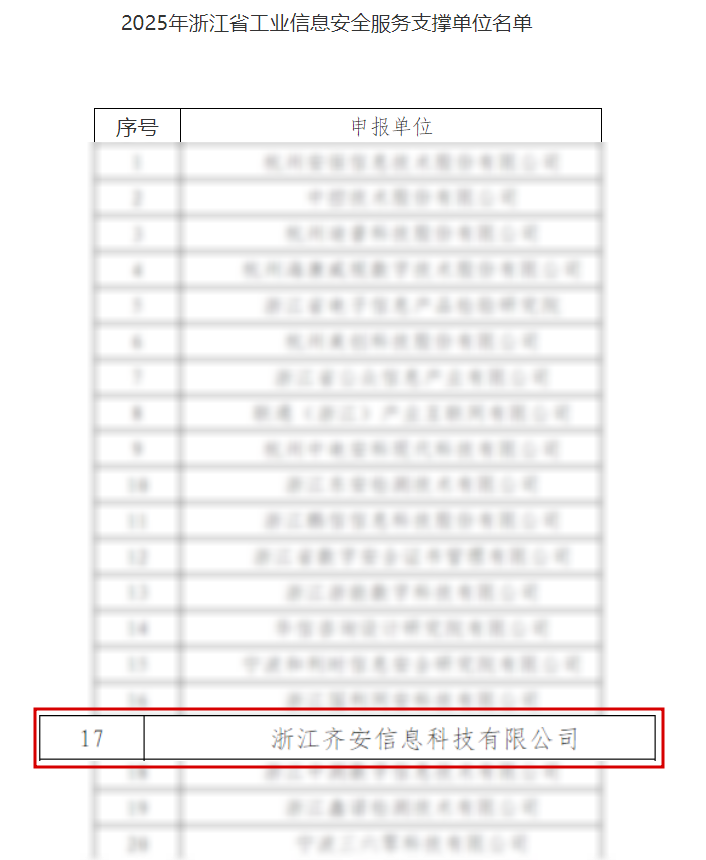公司不仅以便携式运维网关、安全配置核查系统等核心产品构建技术防线,更通过安全应急响应、定期安全审计、定制化安全培训等服务,将安全运维贯穿项目建设与运行全流程。此前,齐安科技凭借在工业数据安全领域的突出技术实力,成功入选省级工业信息安全支撑单位,这正是齐安科技技术实力与行业价值的有力证明。