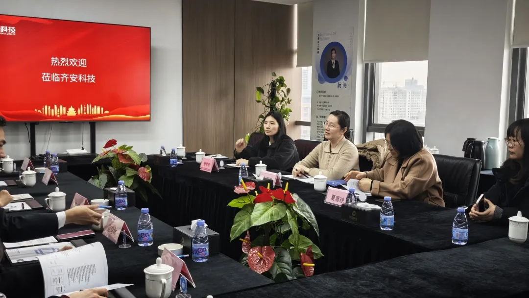 调研期间,沈纾丹副主席一行首先参观了公司展厅,详细了解了齐安科技在工业互联网接入安全领域的技术创新、产品体系及行业应用成果。随后,双方举行了座谈交流。